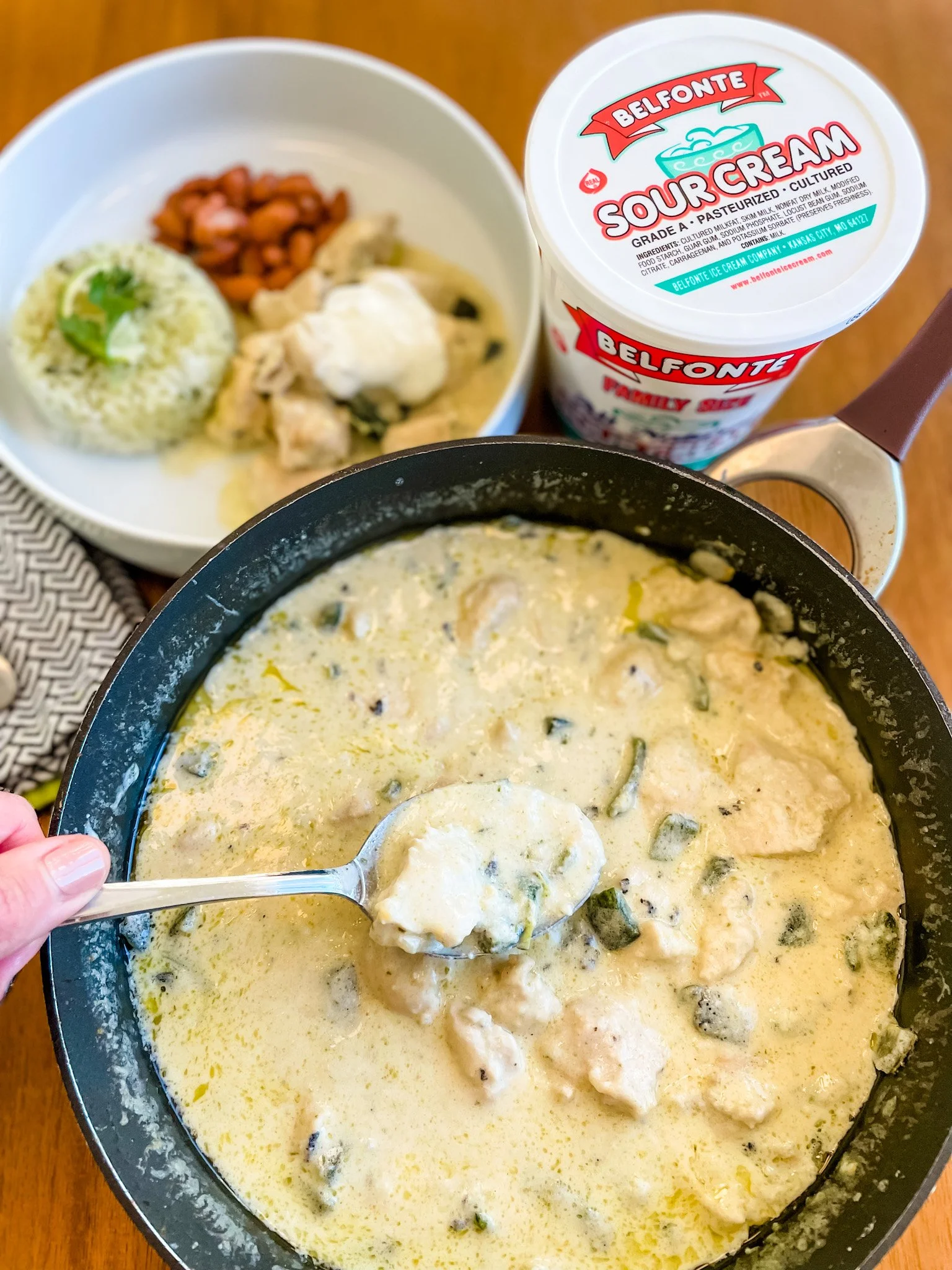 Serve alongside cilantro-lime rice, and top with additional Belfonte Sour Cream, if desired.