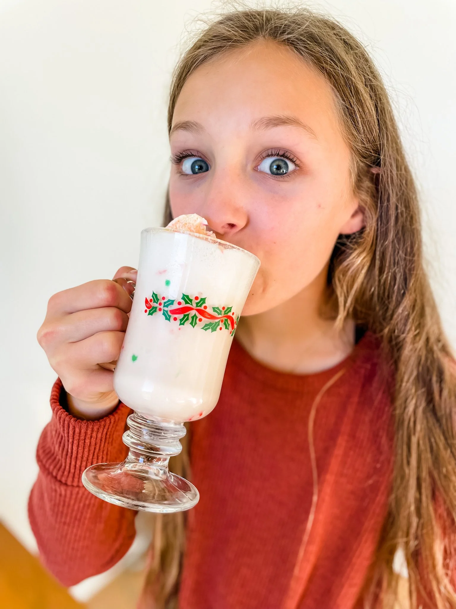 Creamy, delicious Peppermint Eggnog Punch calls for just three ingredients and comes together in minutes to serve a crowd. Pull out the punch bowl (do people still have those?!) for a festive holiday gathering or make individual servings to sip on while decorating your Christmas tree. It’s a favorite of kids and adults alike!